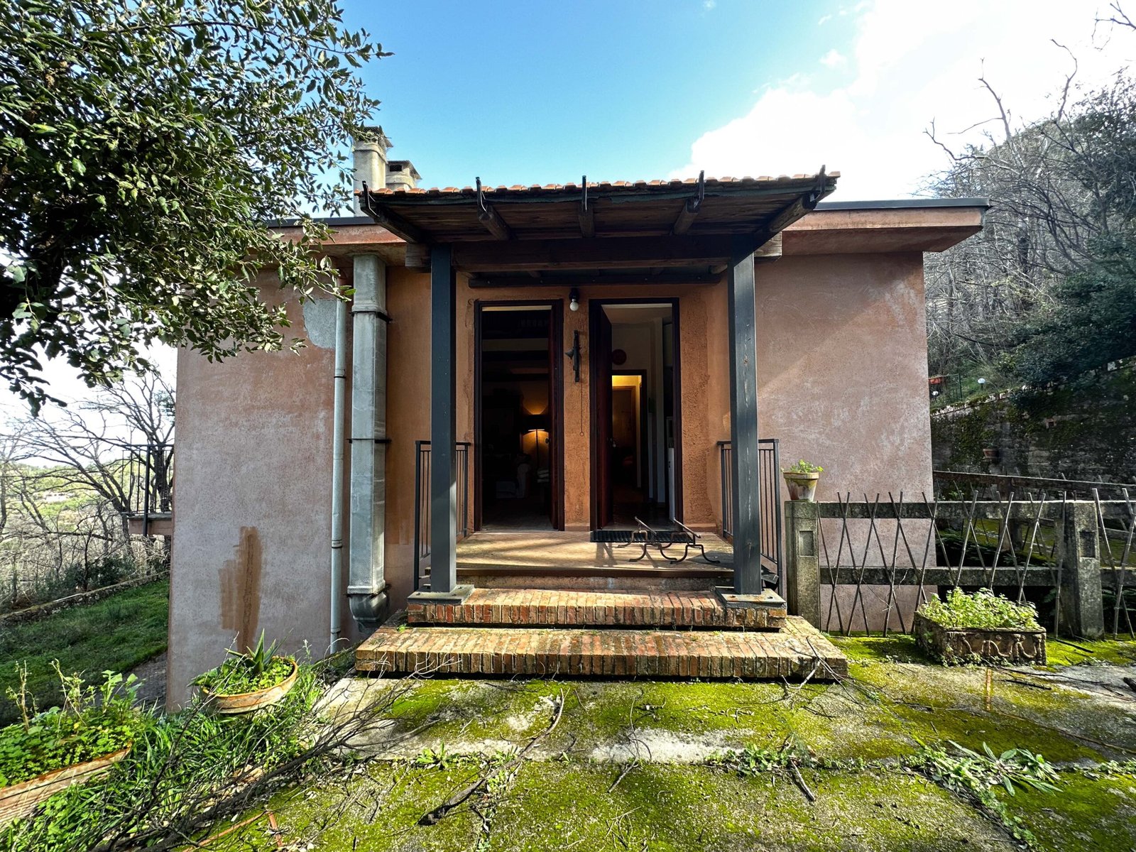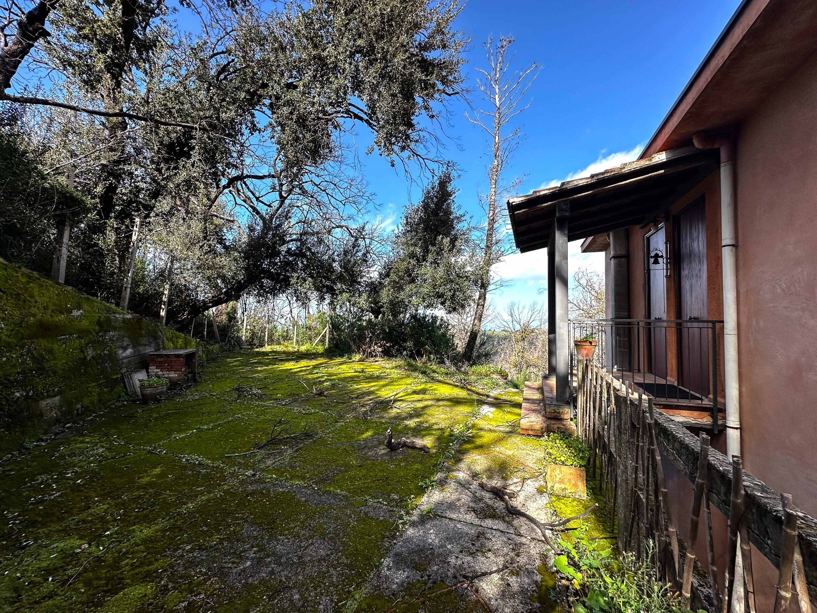 La proprietà si estende su un lotto di circa 4.500 mq di giardino alberato, con la possibilità di realizzare una piscina panoramica nel prato antistante l’ingresso.
