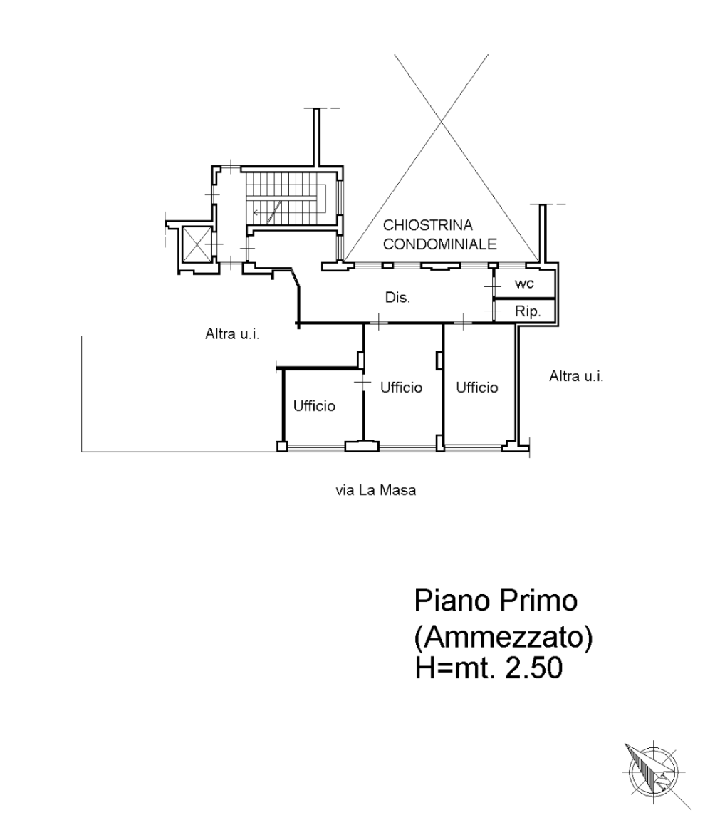 Attualmente adibito a ufficio e ristrutturato di recente, l’immobile si presta facilmente alla conversione in residenziale ed è così composto: